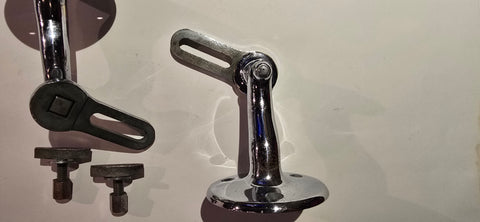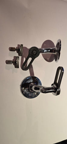 These are the most unique, high quality sink brackets we've ever seen or had in 31 years of business. Heavy chrome playing over brass or bronze. They are adjustable and have their toggle bolts as well. The round base (that attaches to the wall is 3½" diameter x 4¼" depth. These are for a pretty good sized console or pedestal sink. Each bracket weighs 2lbs. Please contact us with any questions or for a shipping quote.